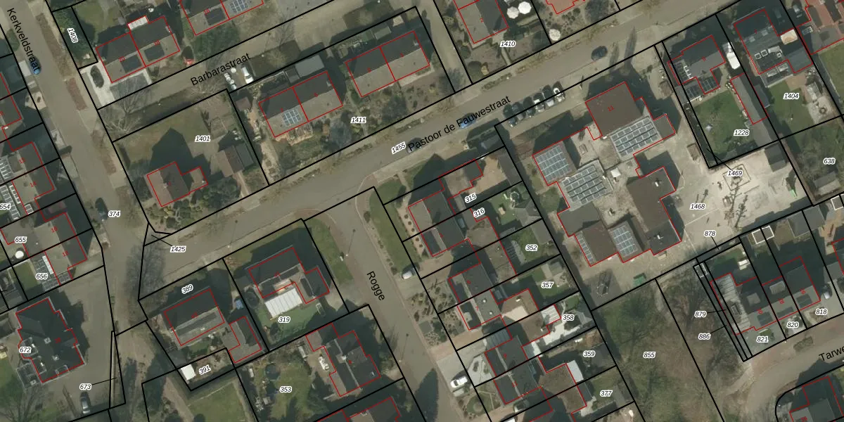 Het perceel waarop Rogge 1 staat heeft een oppervlakte van 312 m². Dit is een groot perceel. De perceeloppervlakte wordt geregistreerd door het Kadaster. Gedetailleerde informatie over de maten van dit perceel kunt u vinden in het rapport Kadastrale kaart met maatvoering van Rogge 1.