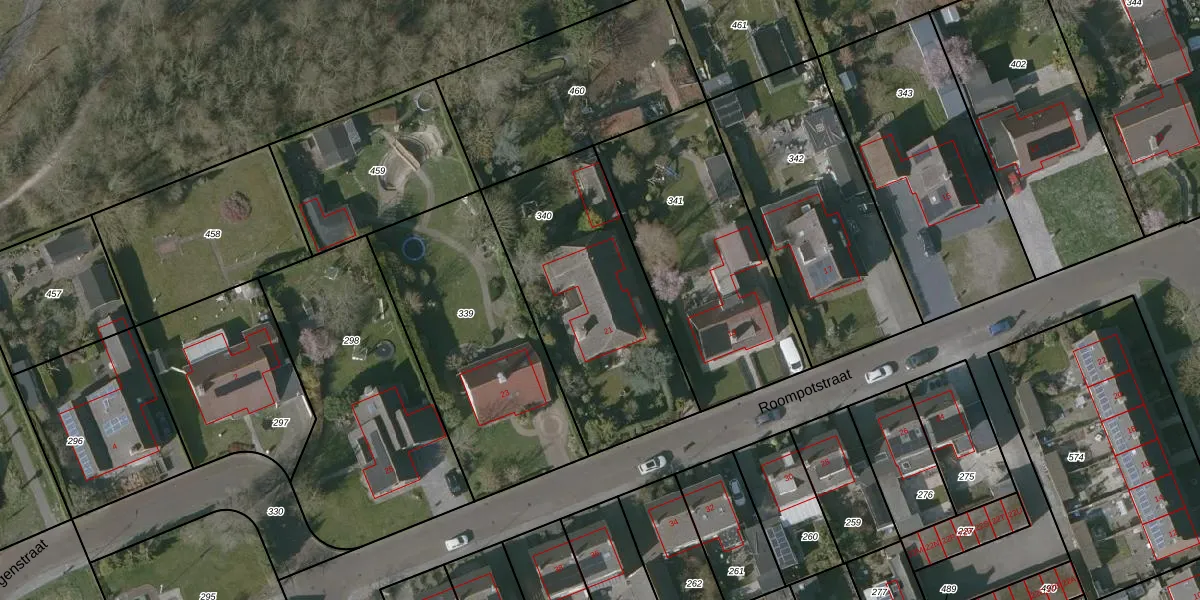 Het perceel waarop Roompotstraat 21 staat heeft een oppervlakte van 970 m². Dit is een groot perceel. De perceeloppervlakte wordt geregistreerd door het Kadaster. Gedetailleerde informatie over de maten van dit perceel kunt u vinden in het rapport Kadastrale kaart met maatvoering van Roompotstraat 21.