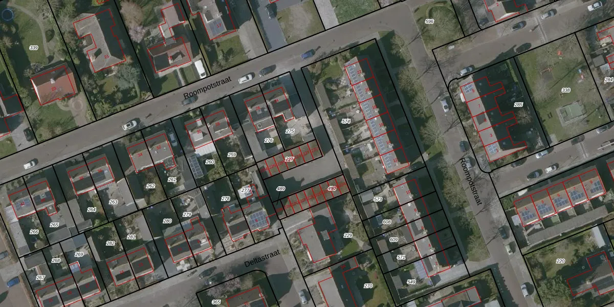 Het perceel waarop Roompotstraat 22-T staat heeft een oppervlakte van 126 m². Dit is een middelgroot perceel. De perceeloppervlakte wordt geregistreerd door het Kadaster. Gedetailleerde informatie over de maten van dit perceel kunt u vinden in het rapport Kadastrale kaart met maatvoering van Roompotstraat 22-T.