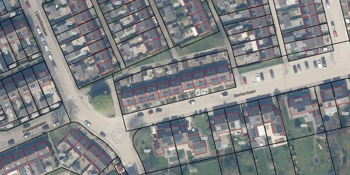 Het perceel waarop Berkenlaan 22 staat heeft een oppervlakte van 1423 m². Dit is een zeer groot perceel. De perceeloppervlakte wordt geregistreerd door het Kadaster. Gedetailleerde informatie over de maten van dit perceel kunt u vinden in het rapport Kadastrale kaart met maatvoering van Berkenlaan 22.