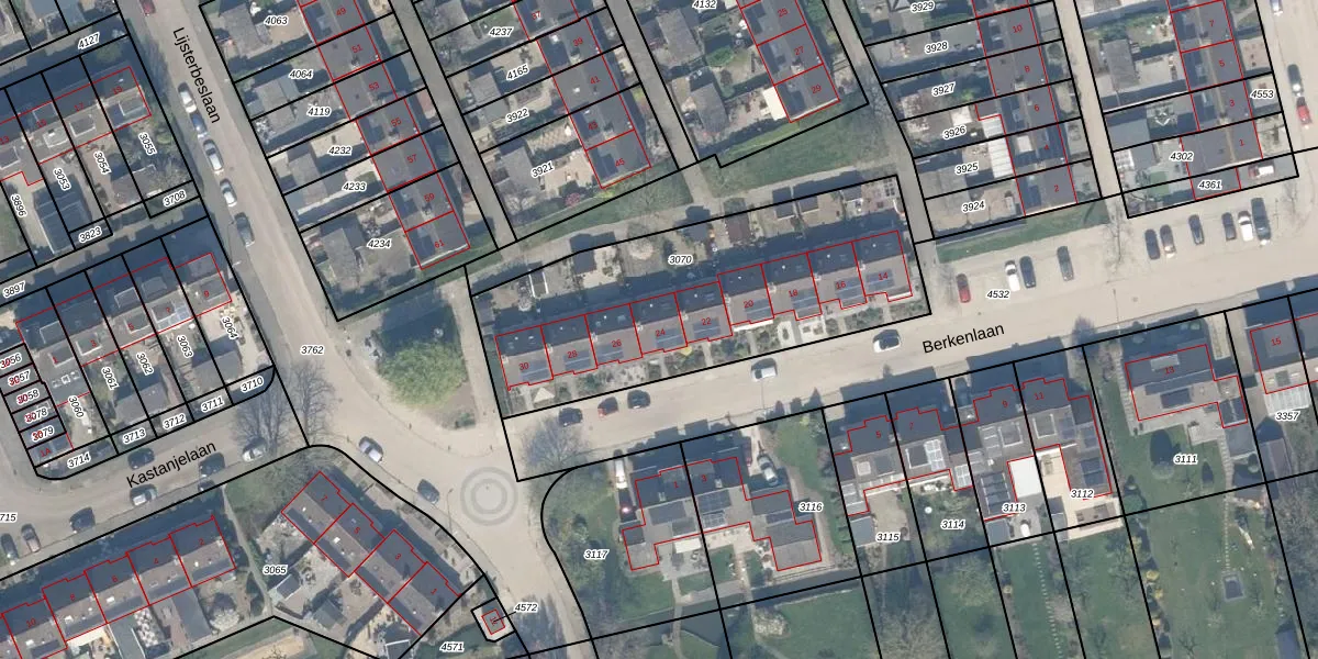 Het perceel waarop Berkenlaan 24 staat heeft een oppervlakte van 1423 m². Dit is een zeer groot perceel. De perceeloppervlakte wordt geregistreerd door het Kadaster. Gedetailleerde informatie over de maten van dit perceel kunt u vinden in het rapport Kadastrale kaart met maatvoering van Berkenlaan 24.