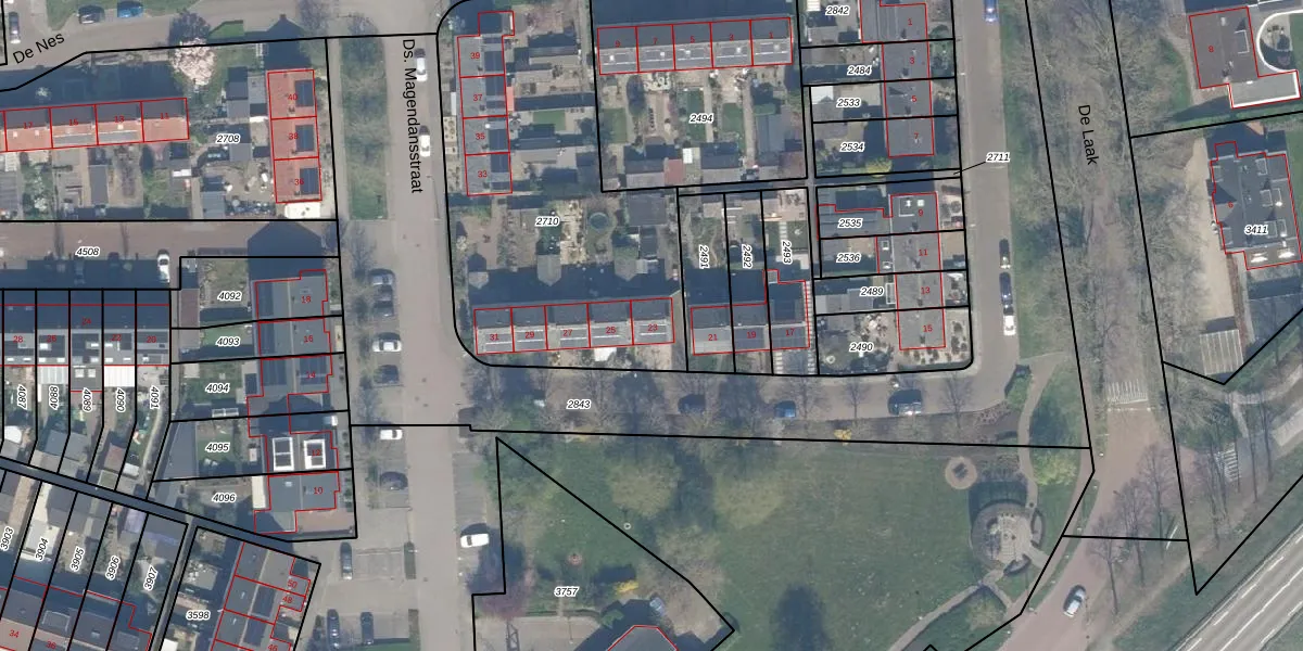 Ds. Magendansstraat 23 is gelegen op kadastraal perceel LMD01B2710. Deze kadastrale aanduiding is uniek en wordt gebruikt door het Kadaster om eigendomsrechten en andere zakelijke rechten vast te leggen. Het perceel maakt onderdeel uit van de kadastrale gemeente Lexmond.