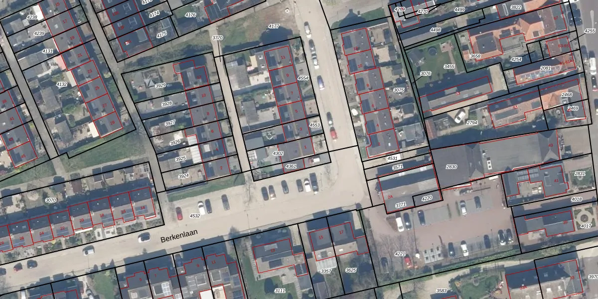 Gebruik de zoekbalk of klik op een perceel voor informatie over de adressen binnen dit perceel.