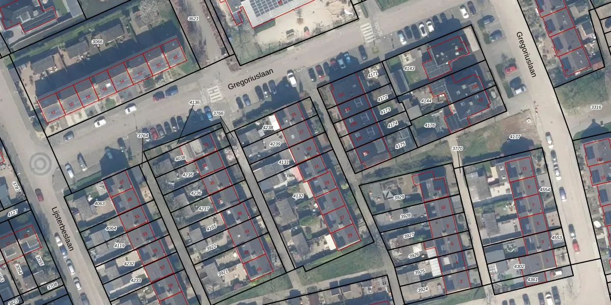 Gregoriuslaan 19 is gelegen op kadastraal perceel LMD01B4131. Deze kadastrale aanduiding is uniek en wordt gebruikt door het Kadaster om eigendomsrechten en andere zakelijke rechten vast te leggen. Het perceel maakt onderdeel uit van de kadastrale gemeente Lexmond.
