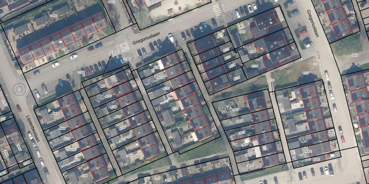 Gregoriuslaan 21 is gelegen op kadastraal perceel LMD01B4132. Deze kadastrale aanduiding is uniek en wordt gebruikt door het Kadaster om eigendomsrechten en andere zakelijke rechten vast te leggen. Het perceel maakt onderdeel uit van de kadastrale gemeente Lexmond.