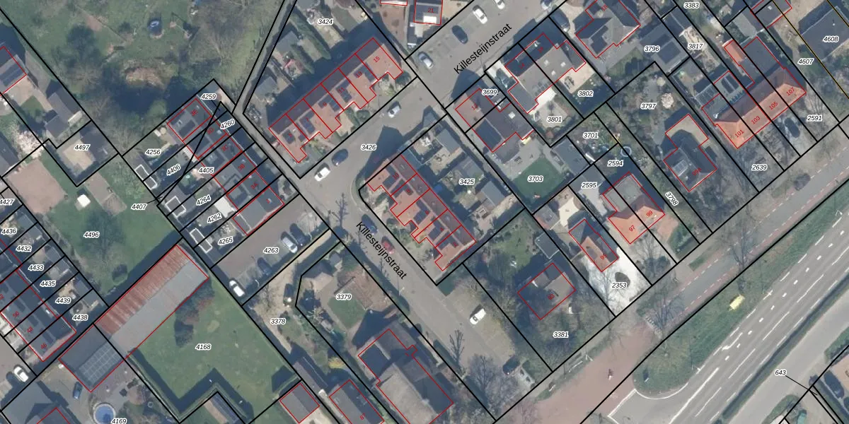 Killesteijnstraat 6 is gelegen op kadastraal perceel LMD01B3425. Deze kadastrale aanduiding is uniek en wordt gebruikt door het Kadaster om eigendomsrechten en andere zakelijke rechten vast te leggen. Het perceel maakt onderdeel uit van de kadastrale gemeente Lexmond.
