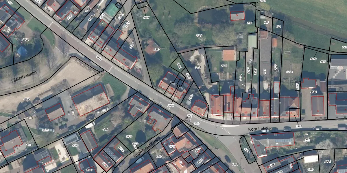 Het perceel waarop Kom Lekdijk 38 staat heeft een oppervlakte van 100 m². Dit is een middelgroot perceel. De perceeloppervlakte wordt geregistreerd door het Kadaster. Gedetailleerde informatie over de maten van dit perceel kunt u vinden in het rapport Kadastrale kaart met maatvoering van Kom Lekdijk 38.