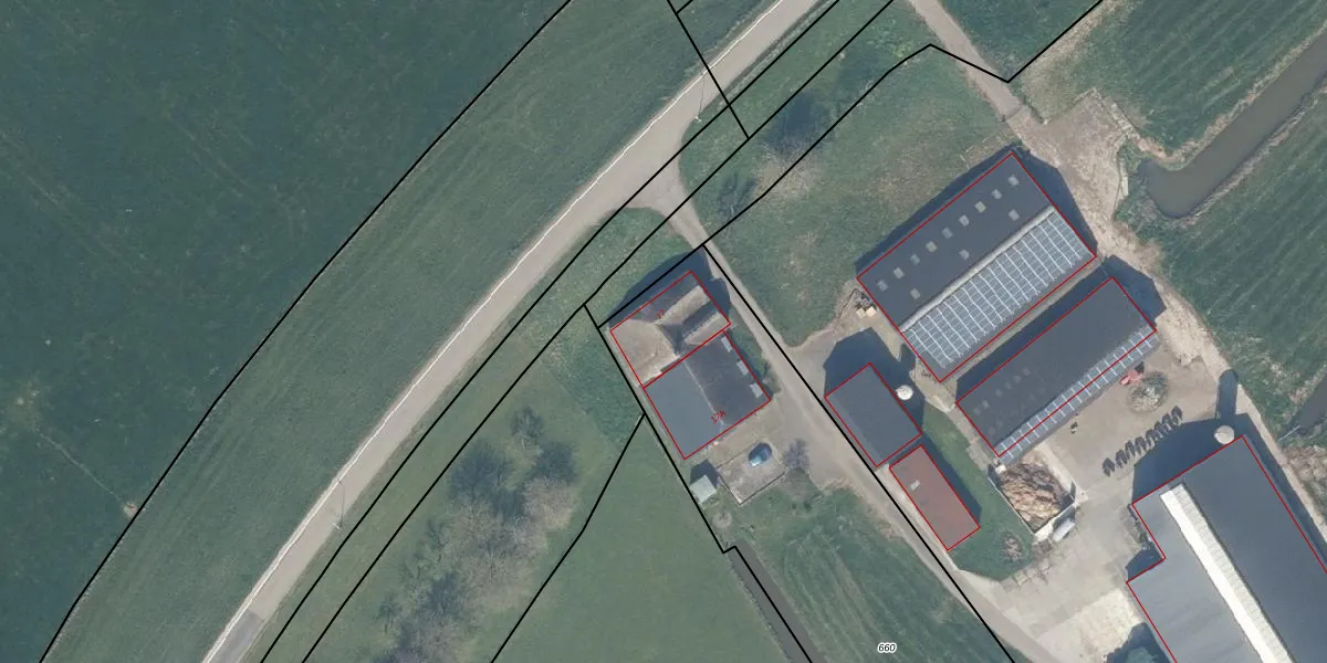 Het adres ligt op het perceel ZDR00-B-660, dat zich in de kadastrale gemeente Zederik bevindt. De gemiddelde perceelgrootte in Zederik is 1,4 ha. Dit perceel is kleiner: de perceeloppervlakte bedraagt 2000 m². De grootste perceeloppervlakte in de kadastrale gemeente is 37,3 ha. De kleinste oppervlakte bedraagt 1 m². Op het perceel zijn 2 adressen aanwezig. De huidige grenzen van het perceel zijn digitaal in de Basisregistratie Kadaster (BRK) geregistreerd op 15-10-2004.