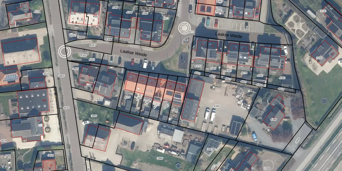 Laakse Weide 10 is gelegen op kadastraal perceel LMD01B4381. Deze kadastrale aanduiding is uniek en wordt gebruikt door het Kadaster om eigendomsrechten en andere zakelijke rechten vast te leggen. Het perceel maakt onderdeel uit van de kadastrale gemeente Lexmond.