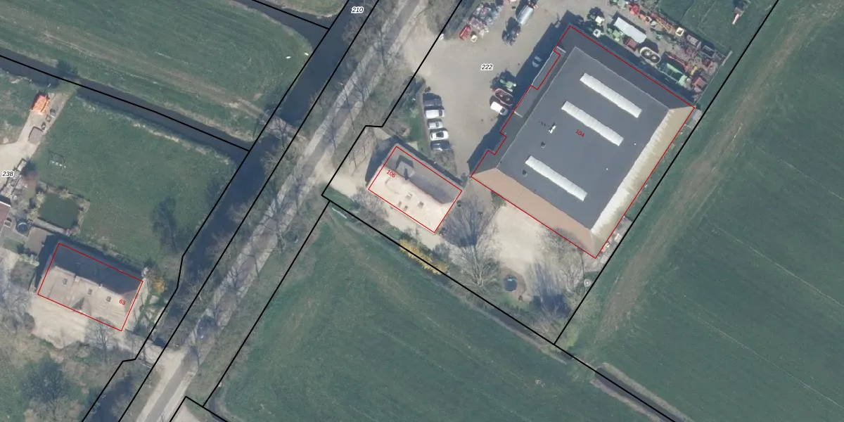 Het adres is gelegen op perceel 222 in de sectie B en de kadastrale gemeente Zederik. De kadastrale aanduiding is aldus ZDR00-B-222. Het perceel is 6155 m² groot. Dat is kleiner dan de gemiddelde perceeloppervlakte in Zederik, dat op 1,4 ha ligt. De grootste perceeloppervlakte in de kadastrale gemeente is 37,3 ha. De kleinste oppervlakte bedraagt 1 m². Op het perceel liggen in totaal 2 adressen. In de Basisregistratie Kadaster (BRK) werden de grenzen van het perceel geregistreerd op 21-10-2002.