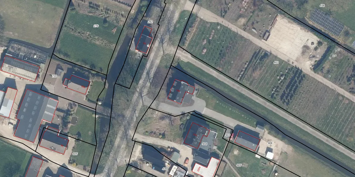 Het adres is gelegen op perceel 906 in de sectie B en de kadastrale gemeente Zederik. De kadastrale aanduiding is aldus ZDR00-B-906. De gemiddelde perceelgrootte in Zederik is 1,4 ha. Dit perceel is kleiner: de perceeloppervlakte bedraagt 9865 m². Het grootste perceel in de kadastrale gemeente is 37,3 ha. Het kleinste perceel heeft een oppervlakte van 1 m². Er zijn geen andere adressen aanwezig op het perceel. De laatste wijziging in het de Basisregistratie Kadaster (BRK) was op 25-01-2017.