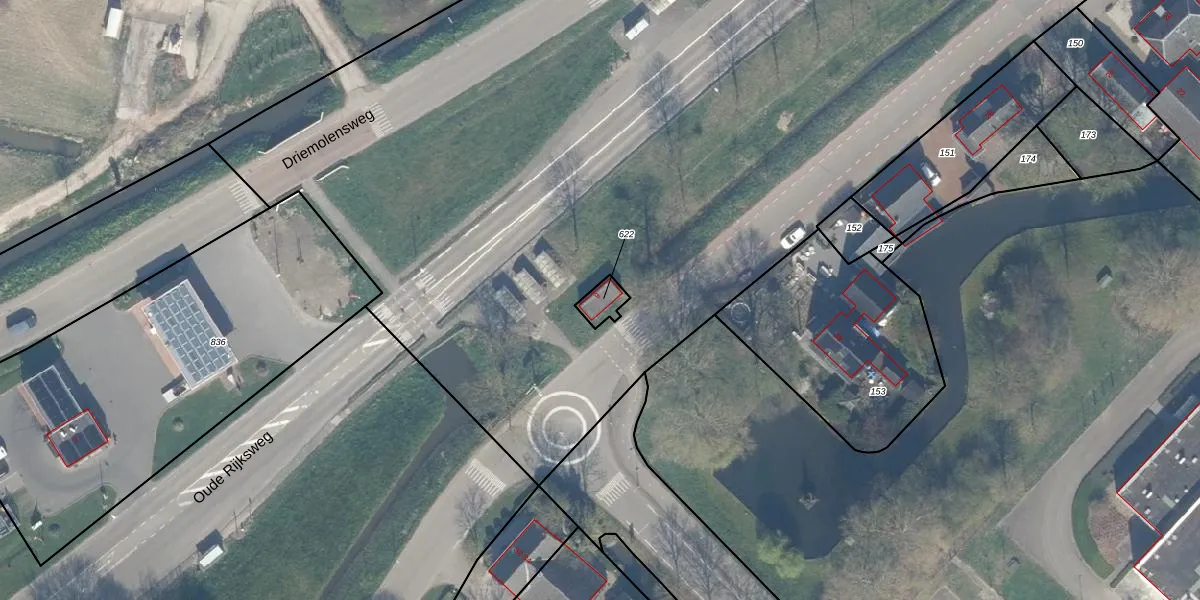 Het adres is gelegen op perceel 622 in de sectie B en de kadastrale gemeente Zederik. De kadastrale aanduiding is aldus ZDR00-B-622. Het perceel is kleiner dan gemiddeld in Zederik. Het perceel is 42 m² groot, terwijl het gemiddelde ligt op 1,4 ha. De grootste perceeloppervlakte in de kadastrale gemeente is 37,3 ha. De kleinste oppervlakte bedraagt 1 m². Er zijn geen andere adressen aanwezig op het perceel. De huidige grenzen van het perceel zijn digitaal in de Basisregistratie Kadaster (BRK) geregistreerd op 18-02-2009.