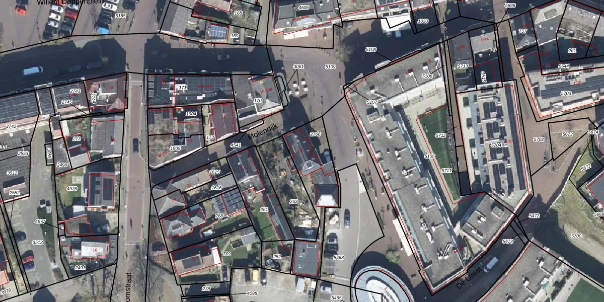 Het perceel waarop Molendijk 13 staat heeft een oppervlakte van 495 m². Dit is een groot perceel. De perceeloppervlakte wordt geregistreerd door het Kadaster. Gedetailleerde informatie over de maten van dit perceel kunt u vinden in het rapport Kadastrale kaart met maatvoering van Molendijk 13.