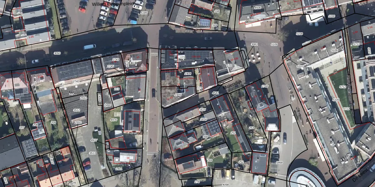 Het perceel waarop Molendijk 14 staat heeft een oppervlakte van 150 m². Dit is een middelgroot perceel. De perceeloppervlakte wordt geregistreerd door het Kadaster. Gedetailleerde informatie over de maten van dit perceel kunt u vinden in het rapport Kadastrale kaart met maatvoering van Molendijk 14.