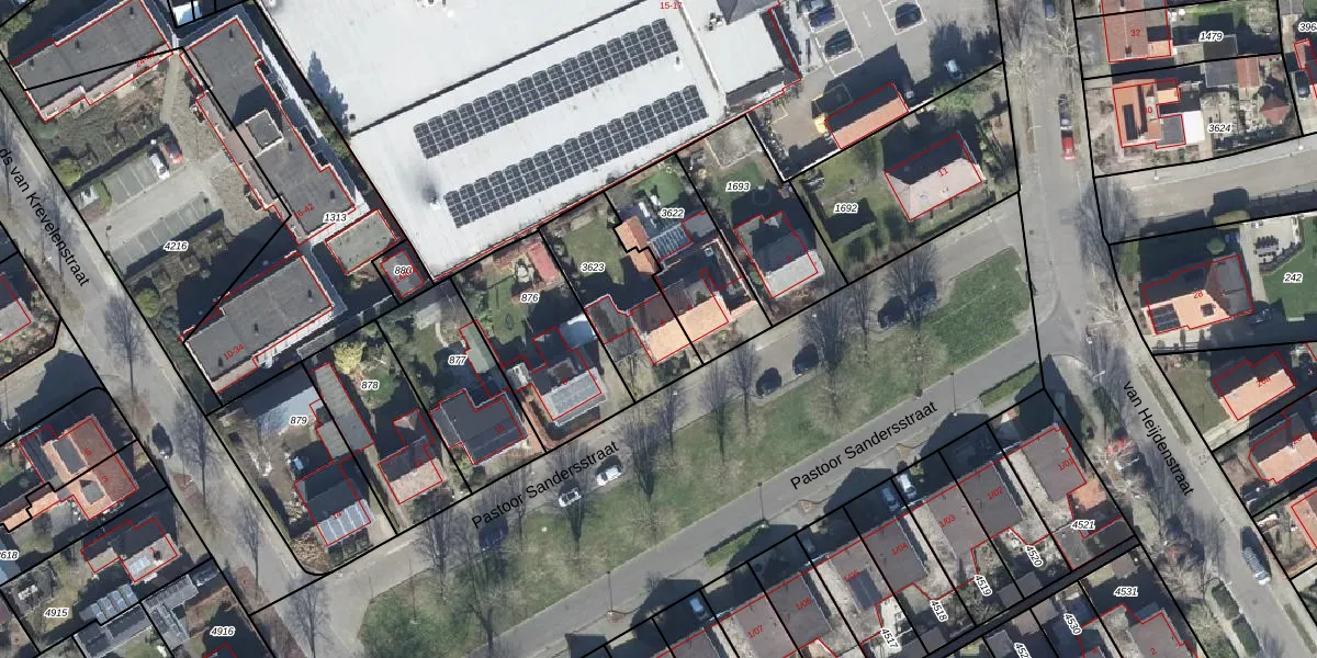 Het perceel waarop Pastoor Sandersstraat 6 staat heeft een oppervlakte van 362 m². Dit is een groot perceel. De perceeloppervlakte wordt geregistreerd door het Kadaster. Gedetailleerde informatie over de maten van dit perceel kunt u vinden in het rapport Kadastrale kaart met maatvoering van Pastoor Sandersstraat 6.