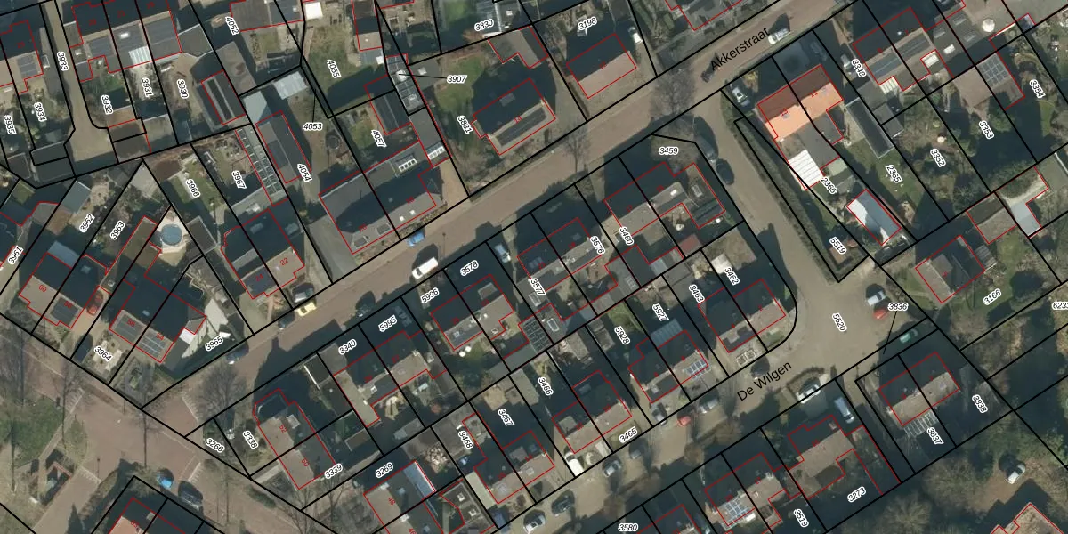 Gebruik de zoekbalk of klik op een perceel voor informatie over de adressen binnen dit perceel.