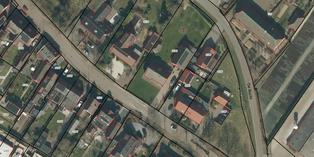 Boxtelseweg 12 is gelegen op kadastraal perceel LDE02E3180. Deze kadastrale aanduiding is uniek en wordt gebruikt door het Kadaster om eigendomsrechten en andere zakelijke rechten vast te leggen. Het perceel maakt onderdeel uit van de kadastrale gemeente Liempde.