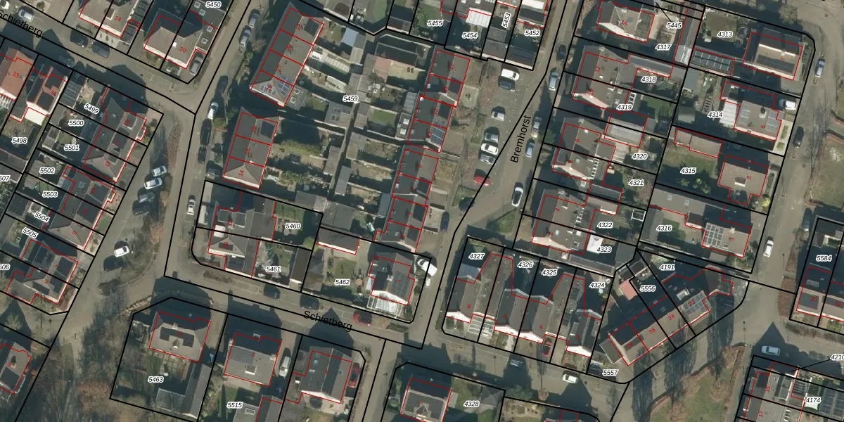 Het perceel waarop Bremhorst 5 staat heeft een oppervlakte van 4450 m². Dit is een zeer groot perceel. De perceeloppervlakte wordt geregistreerd door het Kadaster. Gedetailleerde informatie over de maten van dit perceel kunt u vinden in het rapport Kadastrale kaart met maatvoering van Bremhorst 5.