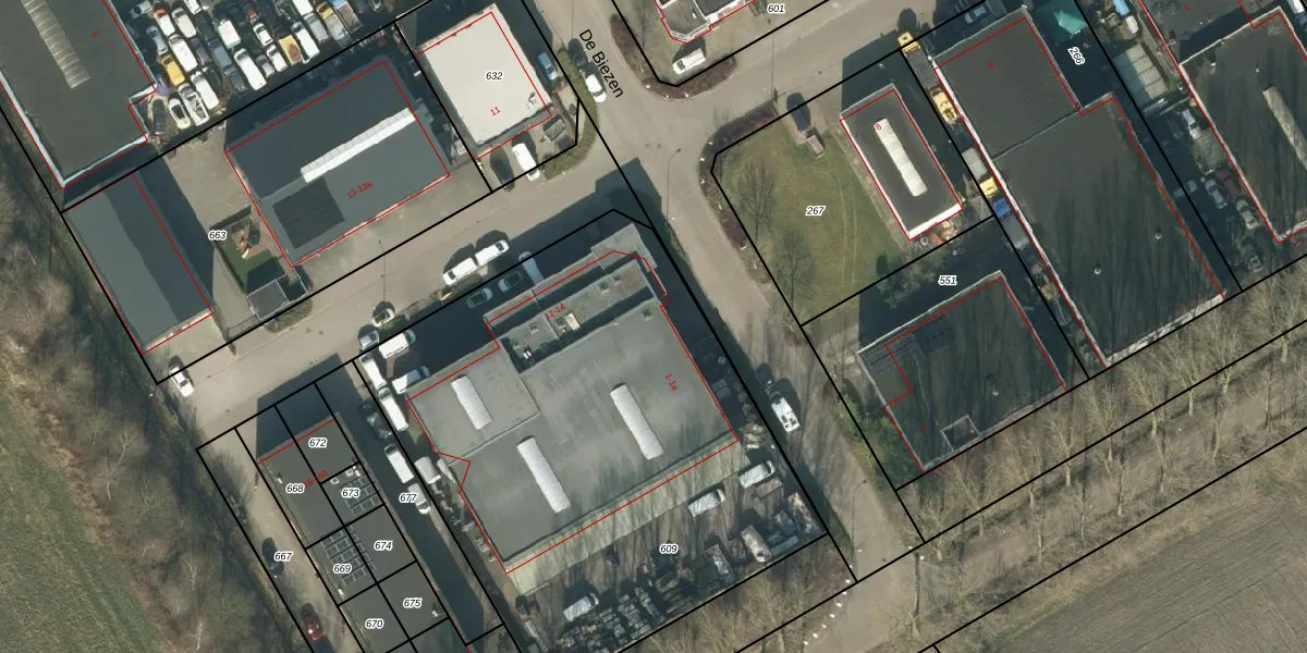 Het perceel waarop De Biezen 1-a staat heeft een oppervlakte van 2953 m². Dit is een zeer groot perceel. De perceeloppervlakte wordt geregistreerd door het Kadaster. Gedetailleerde informatie over de maten van dit perceel kunt u vinden in het rapport Kadastrale kaart met maatvoering van De Biezen 1-a.