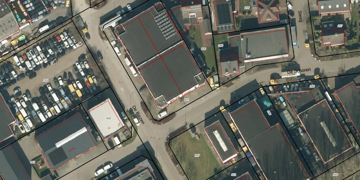 De Schoren 7 is gelegen op kadastraal perceel LDE02G601. Deze kadastrale aanduiding is uniek en wordt gebruikt door het Kadaster om eigendomsrechten en andere zakelijke rechten vast te leggen. Het perceel maakt onderdeel uit van de kadastrale gemeente Liempde.