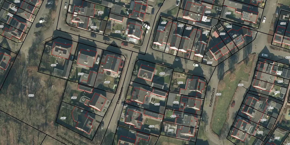 Het perceel waarop Draaiboom 1 staat heeft een oppervlakte van 430 m². Dit is een groot perceel. De perceeloppervlakte wordt geregistreerd door het Kadaster. Gedetailleerde informatie over de maten van dit perceel kunt u vinden in het rapport Kadastrale kaart met maatvoering van Draaiboom 1.