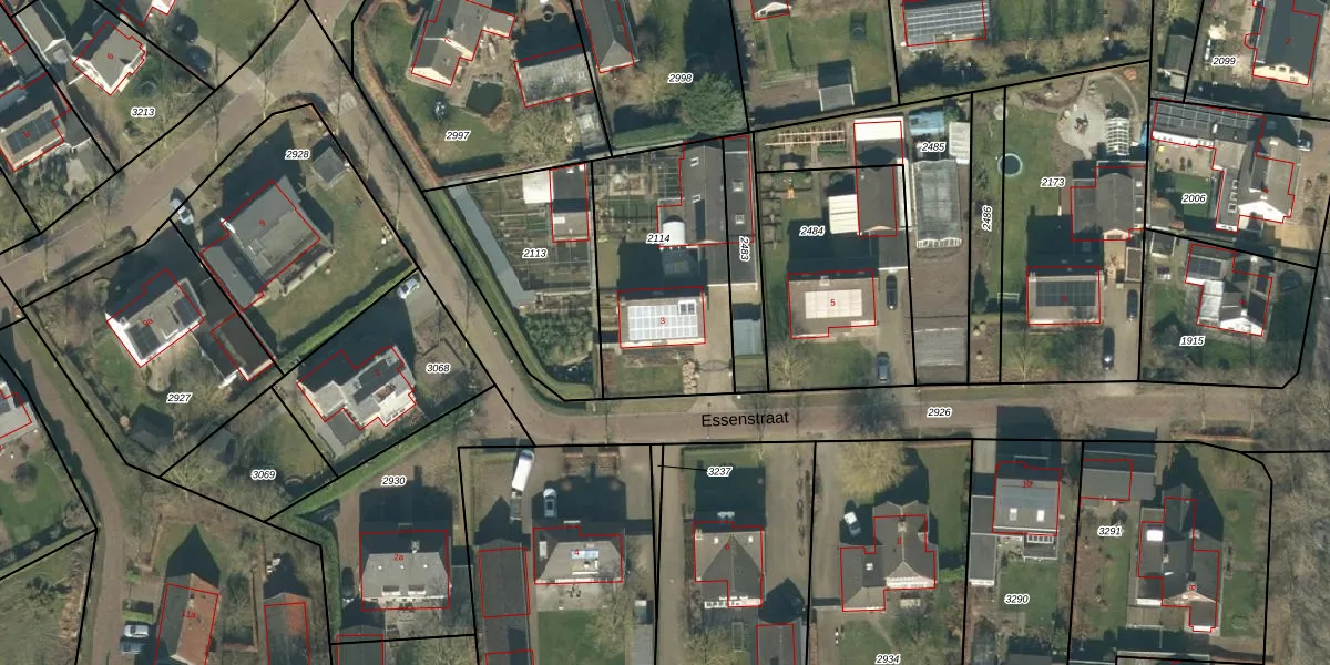 Het perceel waarop Essenstraat 3 staat heeft een oppervlakte van 740 m². Dit is een groot perceel. De perceeloppervlakte wordt geregistreerd door het Kadaster. Gedetailleerde informatie over de maten van dit perceel kunt u vinden in het rapport Kadastrale kaart met maatvoering van Essenstraat 3.