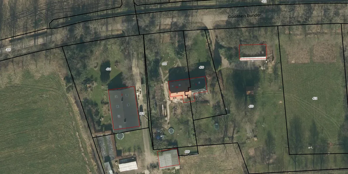 Het perceel waarop Goossen Bunder 1-a staat heeft een oppervlakte van 1580 m². Dit is een zeer groot perceel. De perceeloppervlakte wordt geregistreerd door het Kadaster. Gedetailleerde informatie over de maten van dit perceel kunt u vinden in het rapport Kadastrale kaart met maatvoering van Goossen Bunder 1-a.
