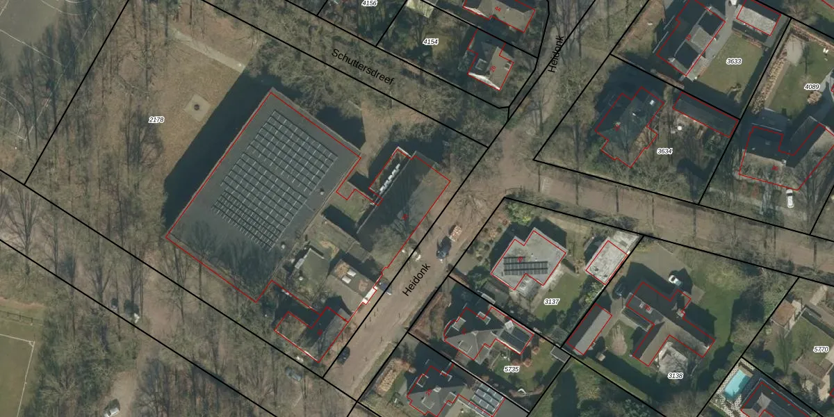 Het perceel waarop Heidonk 28 staat heeft een oppervlakte van 5660 m². Dit is een zeer groot perceel. De perceeloppervlakte wordt geregistreerd door het Kadaster. Gedetailleerde informatie over de maten van dit perceel kunt u vinden in het rapport Kadastrale kaart met maatvoering van Heidonk 28.