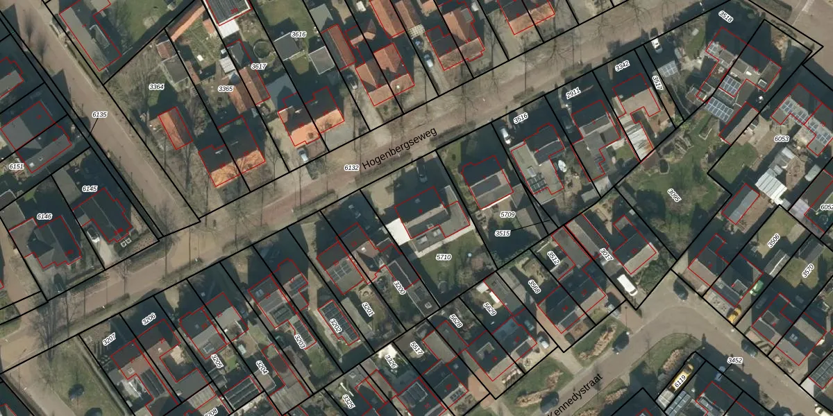 Het perceel waarop Hogenbergseweg 9 staat heeft een oppervlakte van 623 m². Dit is een groot perceel. De perceeloppervlakte wordt geregistreerd door het Kadaster. Gedetailleerde informatie over de maten van dit perceel kunt u vinden in het rapport Kadastrale kaart met maatvoering van Hogenbergseweg 9.