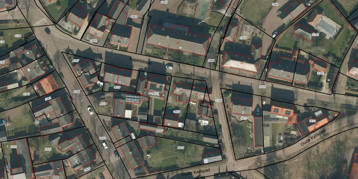 Kapelstraat 21 is gelegen op kadastraal perceel LDE02E3415. Deze kadastrale aanduiding is uniek en wordt gebruikt door het Kadaster om eigendomsrechten en andere zakelijke rechten vast te leggen. Het perceel maakt onderdeel uit van de kadastrale gemeente Liempde.