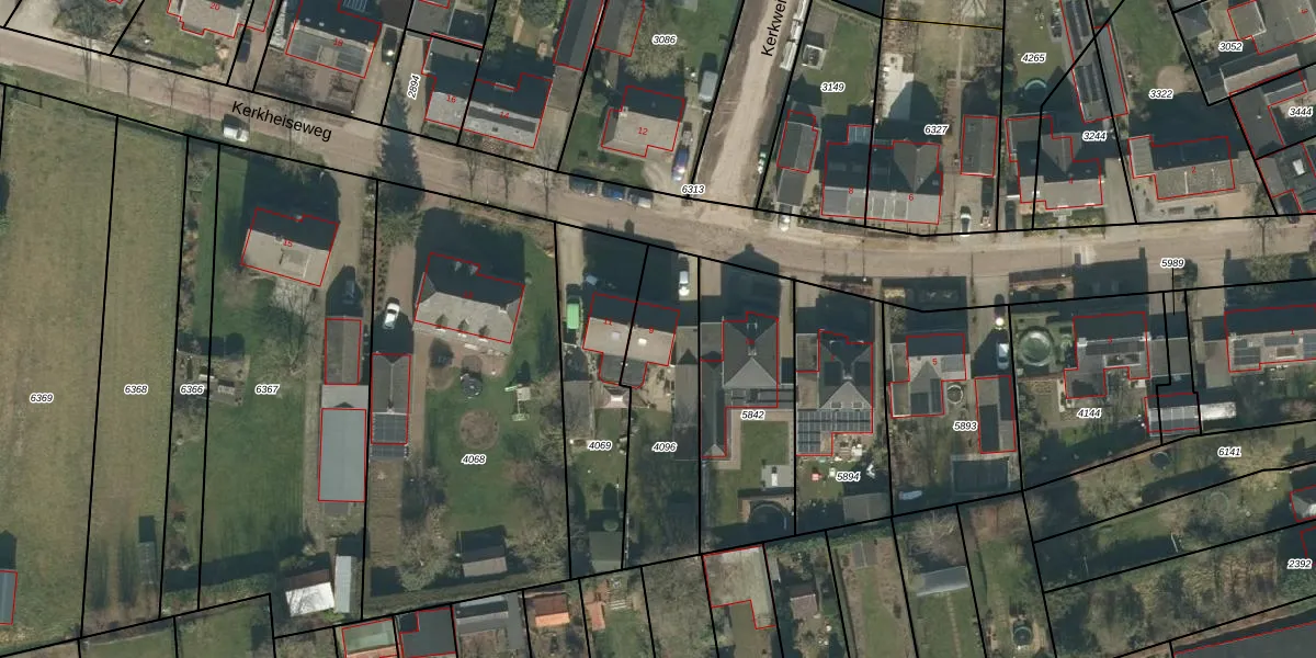 Het perceel waarop Kerkheiseweg 9 staat heeft een oppervlakte van 510 m². Dit is een groot perceel. De perceeloppervlakte wordt geregistreerd door het Kadaster. Gedetailleerde informatie over de maten van dit perceel kunt u vinden in het rapport Kadastrale kaart met maatvoering van Kerkheiseweg 9.