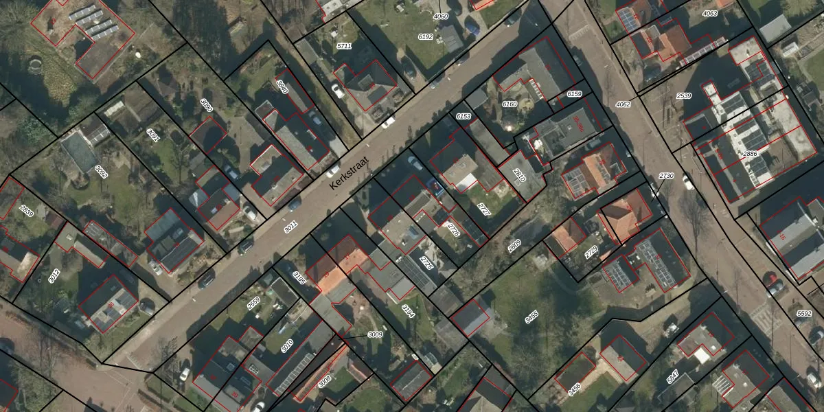 Het perceel waarop Kerkstraat 13 staat heeft een oppervlakte van 323 m². Dit is een groot perceel. De perceeloppervlakte wordt geregistreerd door het Kadaster. Gedetailleerde informatie over de maten van dit perceel kunt u vinden in het rapport Kadastrale kaart met maatvoering van Kerkstraat 13.