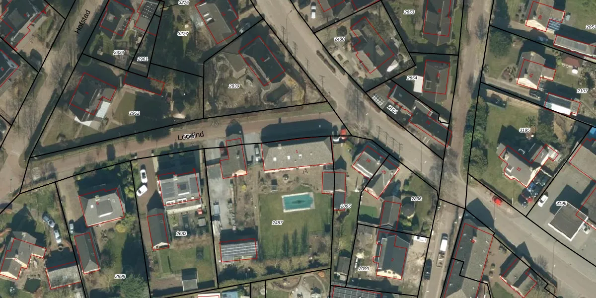 Het perceel waarop Looëind 1 staat heeft een oppervlakte van 1875 m². Dit is een zeer groot perceel. De perceeloppervlakte wordt geregistreerd door het Kadaster. Gedetailleerde informatie over de maten van dit perceel kunt u vinden in het rapport Kadastrale kaart met maatvoering van Looëind 1.