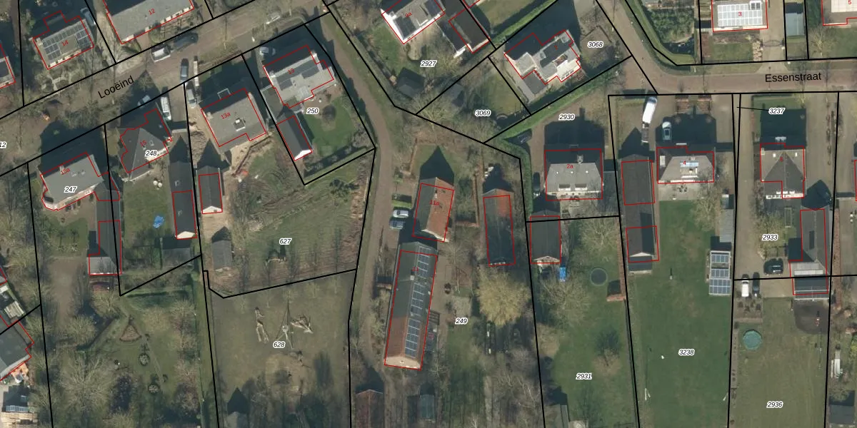 Het perceel waarop Looëind 11-a staat heeft een oppervlakte van 3315 m². Dit is een zeer groot perceel. De perceeloppervlakte wordt geregistreerd door het Kadaster. Gedetailleerde informatie over de maten van dit perceel kunt u vinden in het rapport Kadastrale kaart met maatvoering van Looëind 11-a.