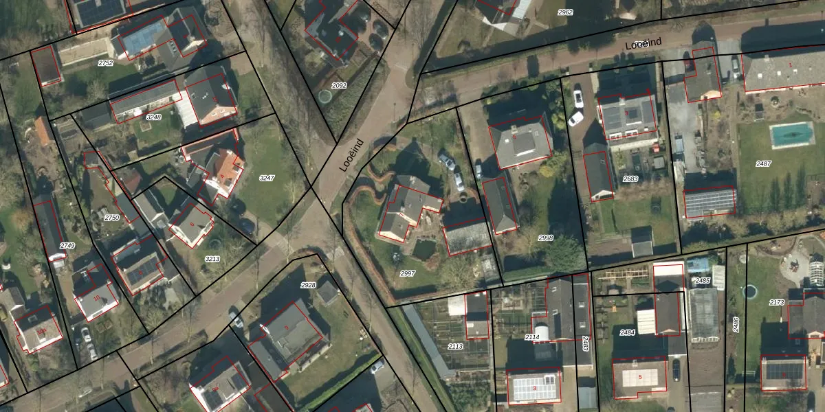 Looëind 7 is gelegen op kadastraal perceel LDE02B2997. Deze kadastrale aanduiding is uniek en wordt gebruikt door het Kadaster om eigendomsrechten en andere zakelijke rechten vast te leggen. Het perceel maakt onderdeel uit van de kadastrale gemeente Liempde.
