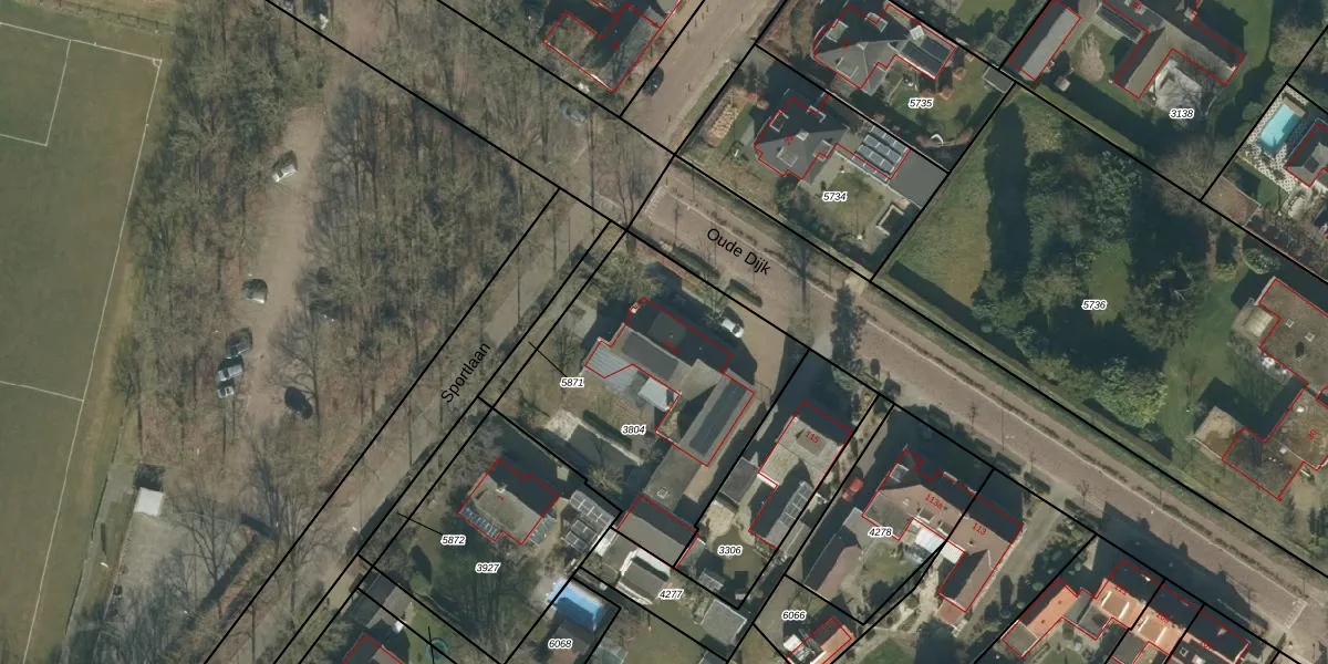 Het perceel waarop Oude Dijk 115-a staat heeft een oppervlakte van 1388 m². Dit is een zeer groot perceel. De perceeloppervlakte wordt geregistreerd door het Kadaster. Gedetailleerde informatie over de maten van dit perceel kunt u vinden in het rapport Kadastrale kaart met maatvoering van Oude Dijk 115-a.