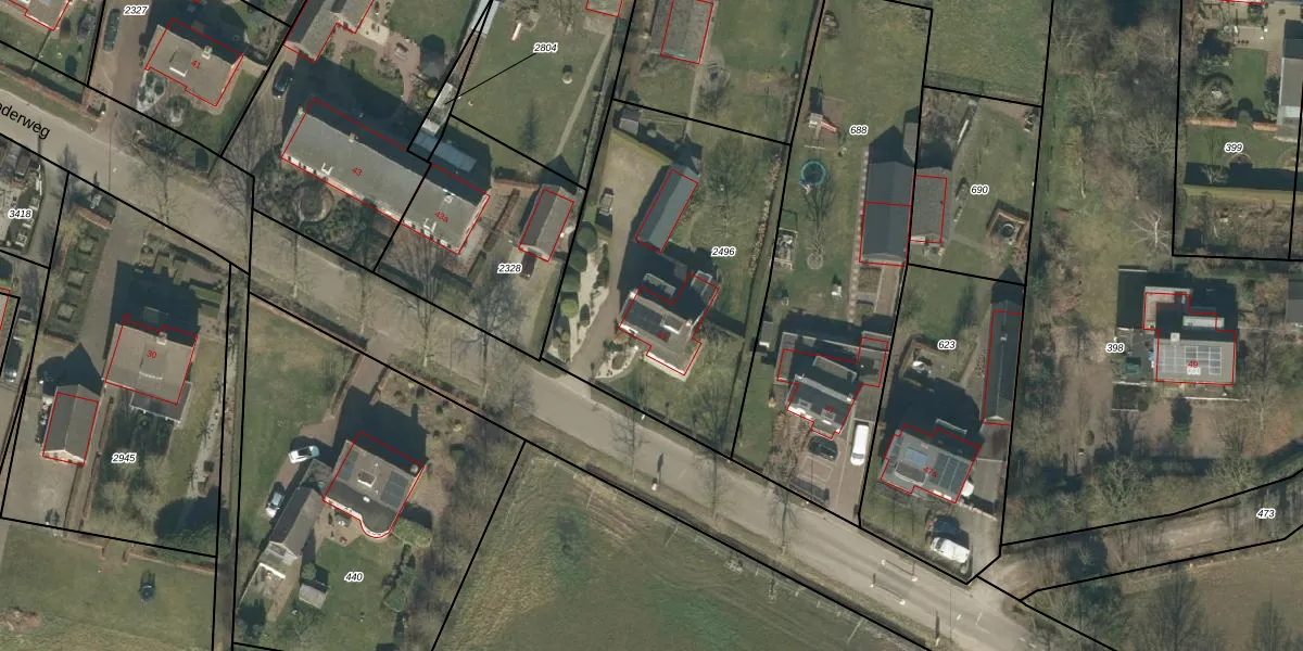 Roderweg 45 is gelegen op kadastraal perceel LDE02B2496. Deze kadastrale aanduiding is uniek en wordt gebruikt door het Kadaster om eigendomsrechten en andere zakelijke rechten vast te leggen. Het perceel maakt onderdeel uit van de kadastrale gemeente Liempde.