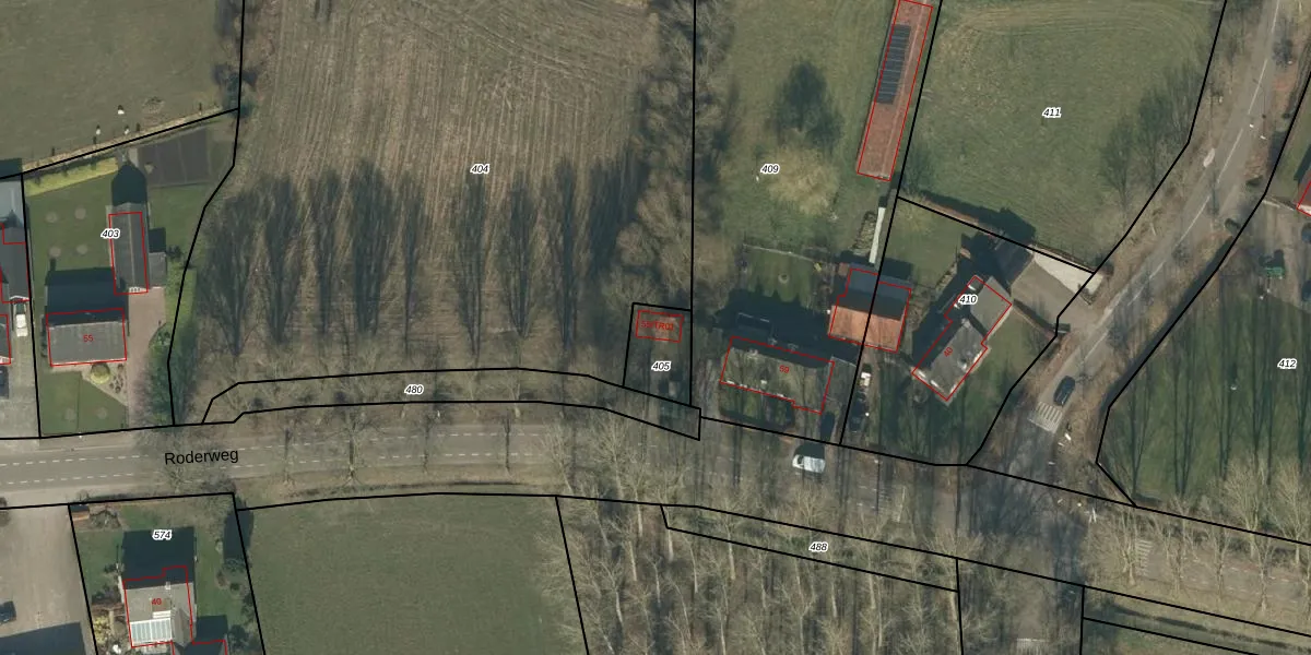 Roderweg 55-TR01 is gelegen op kadastraal perceel LDE02H405. Deze kadastrale aanduiding is uniek en wordt gebruikt door het Kadaster om eigendomsrechten en andere zakelijke rechten vast te leggen. Het perceel maakt onderdeel uit van de kadastrale gemeente Liempde.