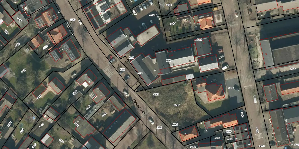 Het perceel waarop Schoolpad 25 staat heeft een oppervlakte van 2754 m². Dit is een zeer groot perceel. De perceeloppervlakte wordt geregistreerd door het Kadaster. Gedetailleerde informatie over de maten van dit perceel kunt u vinden in het rapport Kadastrale kaart met maatvoering van Schoolpad 25.