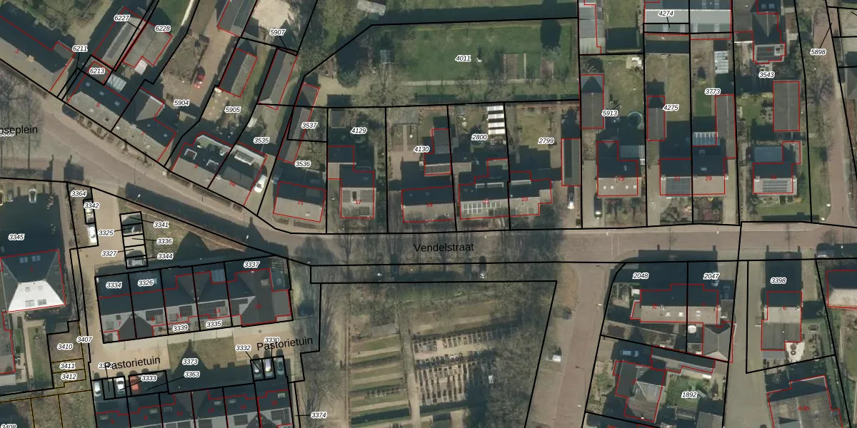 Het perceel waarop Vendelstraat 19 staat heeft een oppervlakte van 380 m². Dit is een groot perceel. De perceeloppervlakte wordt geregistreerd door het Kadaster. Gedetailleerde informatie over de maten van dit perceel kunt u vinden in het rapport Kadastrale kaart met maatvoering van Vendelstraat 19.