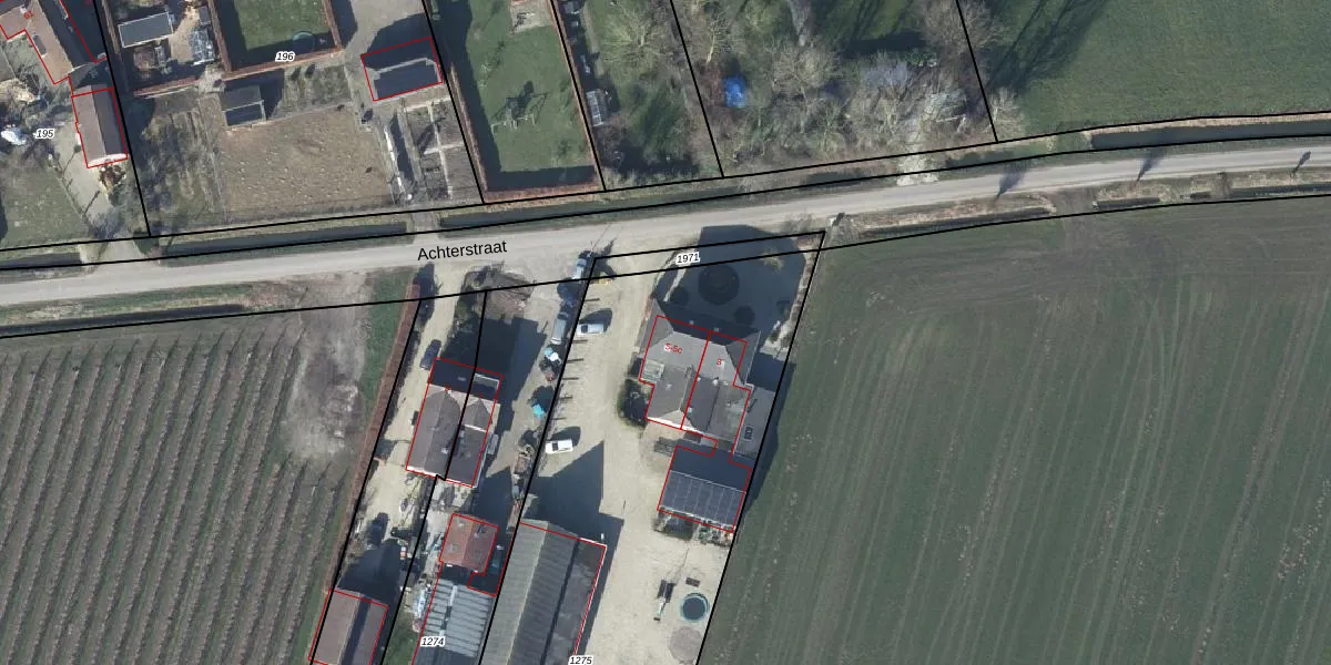 Het perceel waarop Achterstraat 5-a staat heeft een oppervlakte van 3455 m². Dit is een zeer groot perceel. De perceeloppervlakte wordt geregistreerd door het Kadaster. Gedetailleerde informatie over de maten van dit perceel kunt u vinden in het rapport Kadastrale kaart met maatvoering van Achterstraat 5-a.
