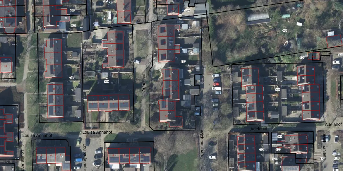 Het perceel waarop Agneshof 33 staat heeft een oppervlakte van 1815 m². Dit is een zeer groot perceel. De perceeloppervlakte wordt geregistreerd door het Kadaster. Gedetailleerde informatie over de maten van dit perceel kunt u vinden in het rapport Kadastrale kaart met maatvoering van Agneshof 33.