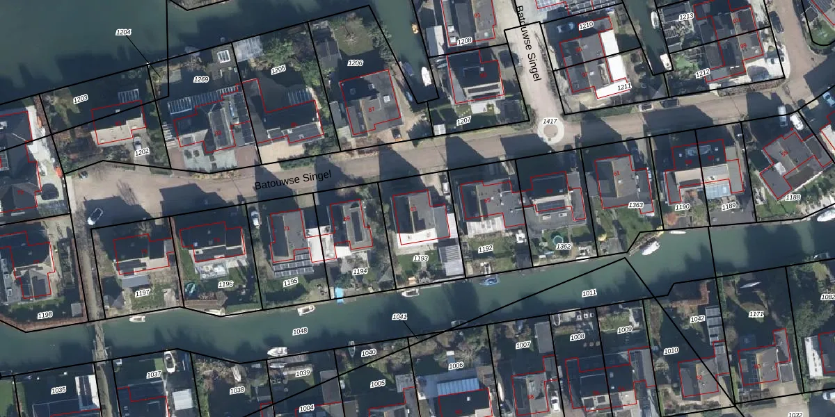 Het perceel waarop Batouwse Singel 67 staat heeft een oppervlakte van 440 m². Dit is een groot perceel. De perceeloppervlakte wordt geregistreerd door het Kadaster. Gedetailleerde informatie over de maten van dit perceel kunt u vinden in het rapport Kadastrale kaart met maatvoering van Batouwse Singel 67.