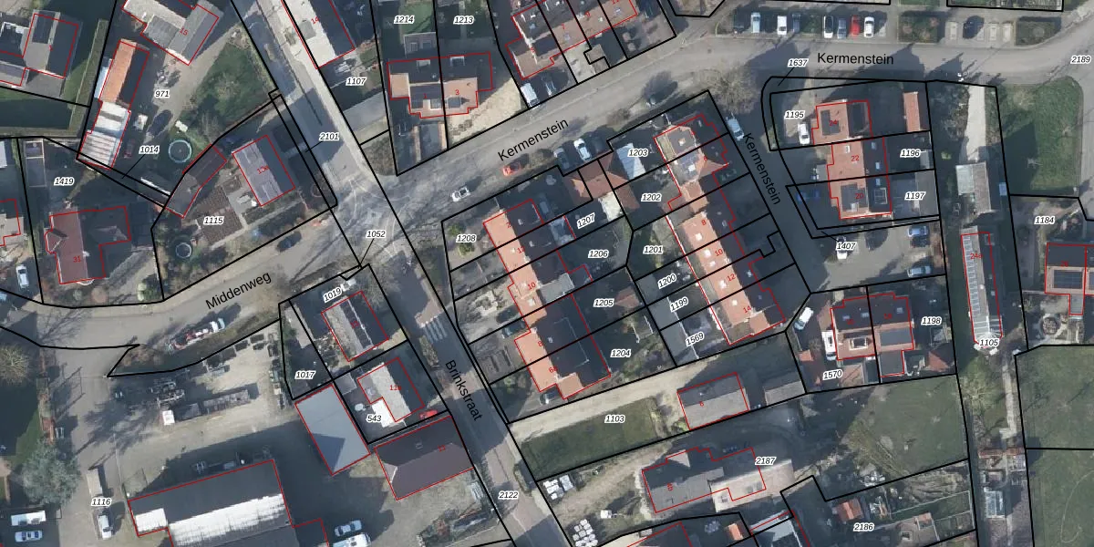Gebruik de zoekbalk of klik op een perceel voor informatie over de adressen binnen dit perceel.