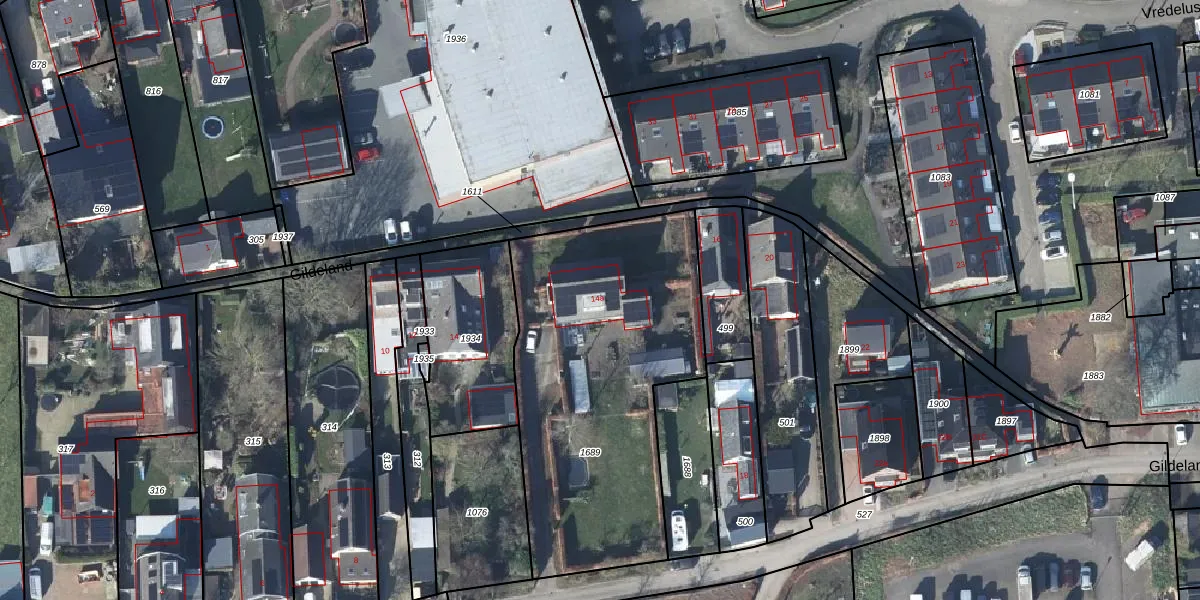 Het perceel waarop Gildeland 14-a staat heeft een oppervlakte van 1520 m². Dit is een zeer groot perceel. De perceeloppervlakte wordt geregistreerd door het Kadaster. Gedetailleerde informatie over de maten van dit perceel kunt u vinden in het rapport Kadastrale kaart met maatvoering van Gildeland 14-a.