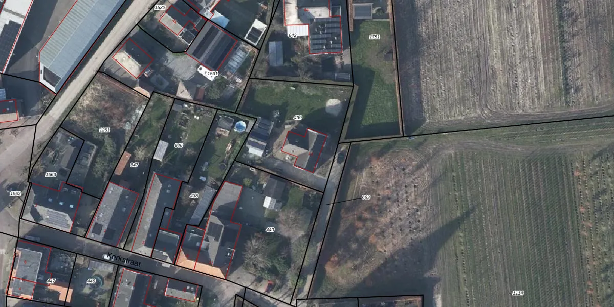 Het perceel waarop Kerkstraat 13 staat heeft een oppervlakte van 990 m². Dit is een groot perceel. De perceeloppervlakte wordt geregistreerd door het Kadaster. Gedetailleerde informatie over de maten van dit perceel kunt u vinden in het rapport Kadastrale kaart met maatvoering van Kerkstraat 13.