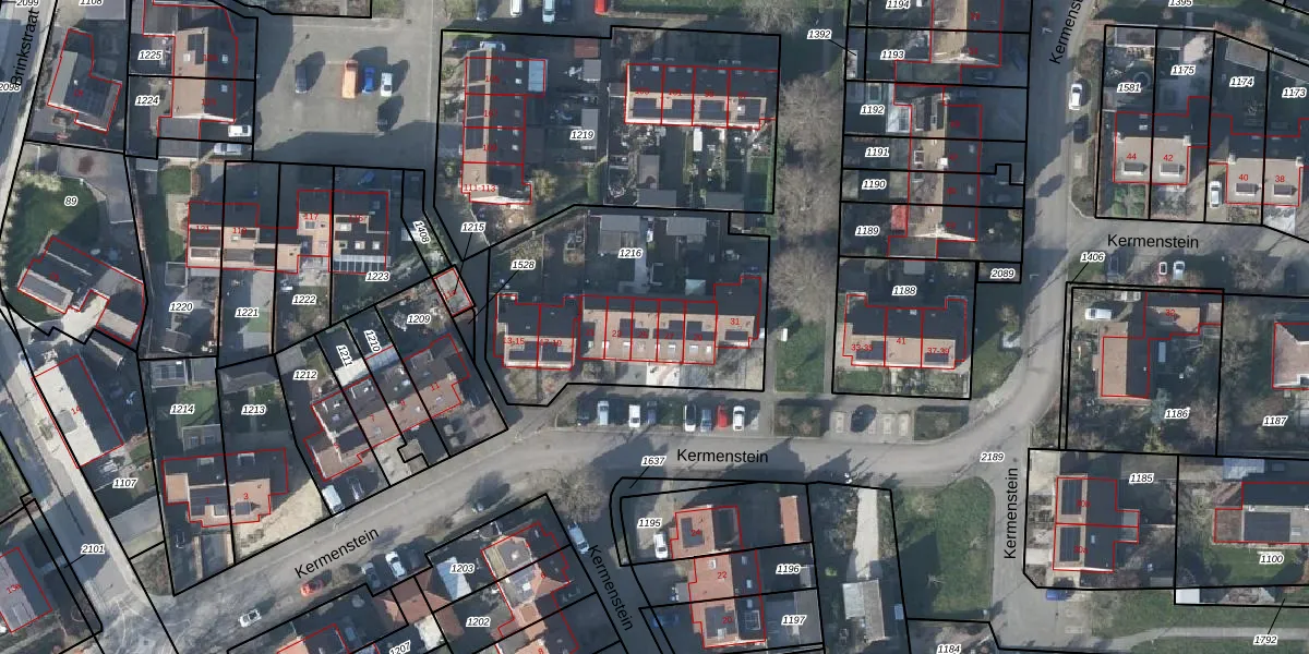 Het perceel waarop Kermenstein 25 staat heeft een oppervlakte van 1118 m². Dit is een zeer groot perceel. De perceeloppervlakte wordt geregistreerd door het Kadaster. Gedetailleerde informatie over de maten van dit perceel kunt u vinden in het rapport Kadastrale kaart met maatvoering van Kermenstein 25.