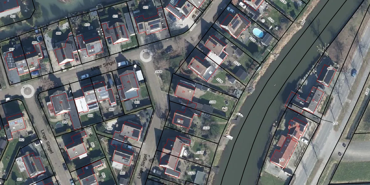 Het perceel waarop Linge Singel 27 staat heeft een oppervlakte van 496 m². Dit is een groot perceel. De perceeloppervlakte wordt geregistreerd door het Kadaster. Gedetailleerde informatie over de maten van dit perceel kunt u vinden in het rapport Kadastrale kaart met maatvoering van Linge Singel 27.