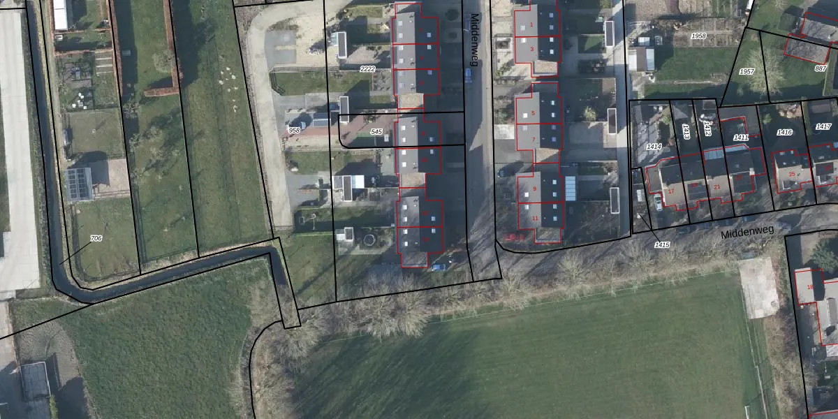 Middenweg 12 is gelegen op kadastraal perceel LDN04L2222. Deze kadastrale aanduiding is uniek en wordt gebruikt door het Kadaster om eigendomsrechten en andere zakelijke rechten vast te leggen. Het perceel maakt onderdeel uit van de kadastrale gemeente Lienden.