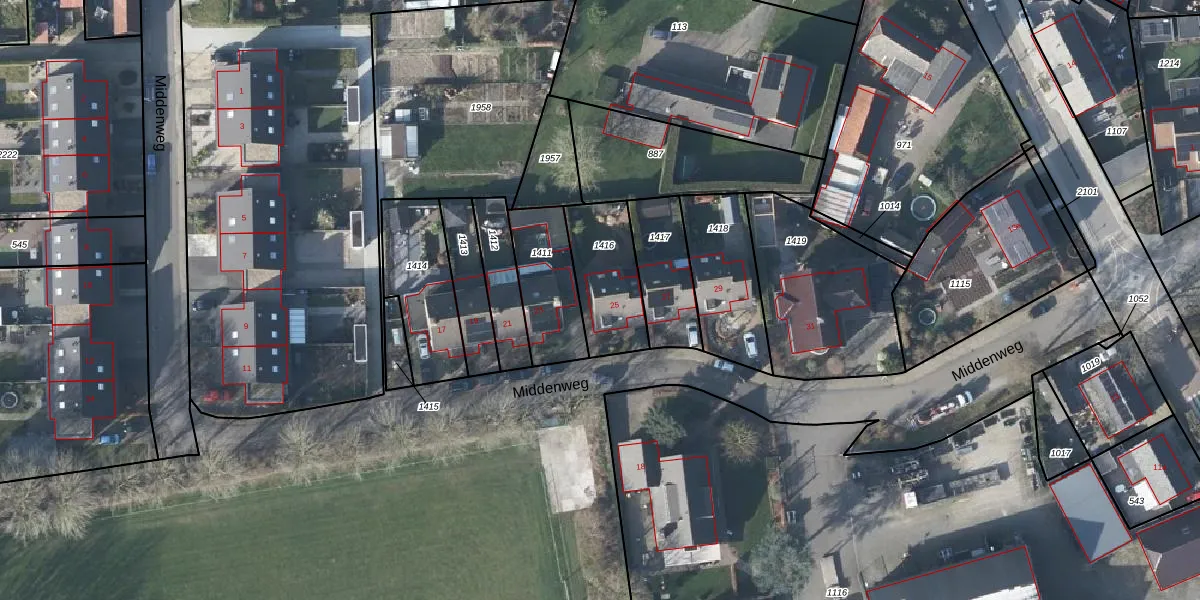 Middenweg 25 is gelegen op kadastraal perceel LDN04L1416. Deze kadastrale aanduiding is uniek en wordt gebruikt door het Kadaster om eigendomsrechten en andere zakelijke rechten vast te leggen. Het perceel maakt onderdeel uit van de kadastrale gemeente Lienden.